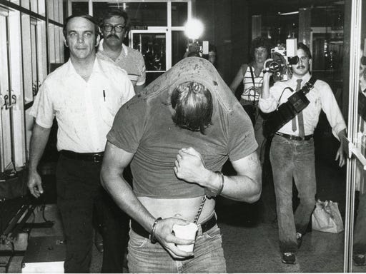 Miller tried to hide his face from the cameras on his return to Knoxville. Two juries ultimately sentenced him to die – the first in 1982, the last in 1987 after the Tennessee Supreme Court ordered Miller resentenced.