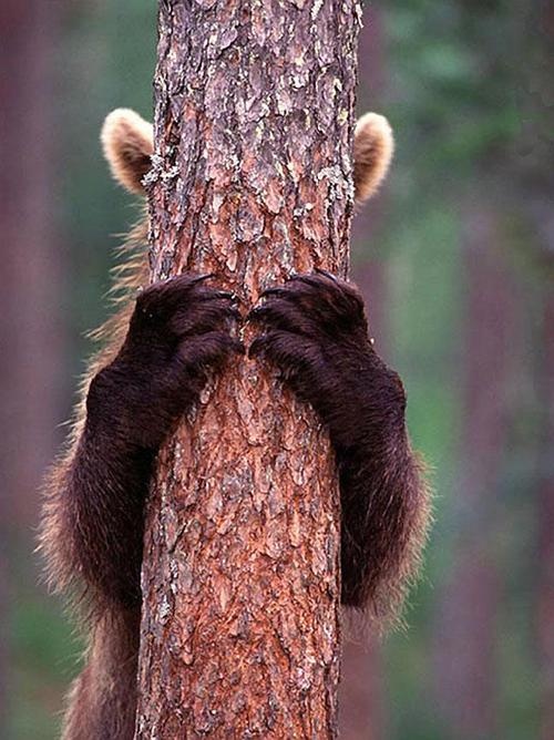 Peekaboo – Photographer Captures Playful Brown Bear Hiding Behind Tree In Finland