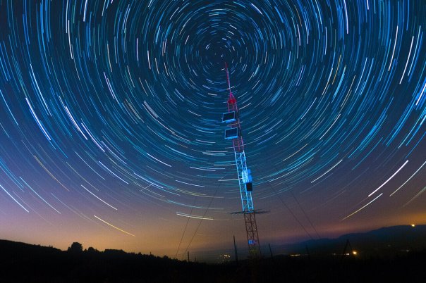 Here is a time exposure of the northern night sky. The exposure was about an hour. Through any given day or night, every object in the sky rotates around the North Star, moving clockwise roughly one degree every four minutes. What actually happens is, instead, that the Earth rotates on its axis one degree in that same time.