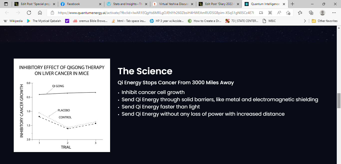 He does not indicate the source of the qi, nor how it was focused on the mice — from 3,000 miles away. It is true that qi passes unimpeded through material objects, that its motion is instantaneous, and that it does not dissipate across distance; for reason that it exists outside of space-time. He provides no link to any published research, which leads me to believe no such experiment ever took place.
