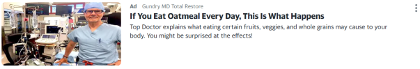He hasn’t advertised all that intensively lately, but I used to see his ads all the time on Yahoo!, and they became an irritation. Now, quite a few other peddlers of supplements advertise much the same way; I adduce that one single ad agency is producing all of these; but it’s a singularly ineffective way to sell a product. Except possibly to consumers who are singularly stupid.