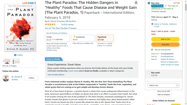 Steven Gundry, MD, made a name for himself in conventional medicine, and then either went whacko or became exceptionally greedy.