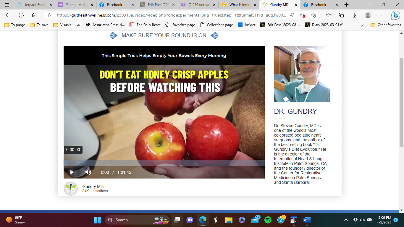 This always leads to a page where the images and text have no relation to the original image. (Note from the images above, that he has a multiplicity of web sites.) There follows an interminable video, that in Dr. Gundry’s case will wander from subject to subject to subject that have no relation to each other; and presumably ends up with the sales pitch for his supplements.