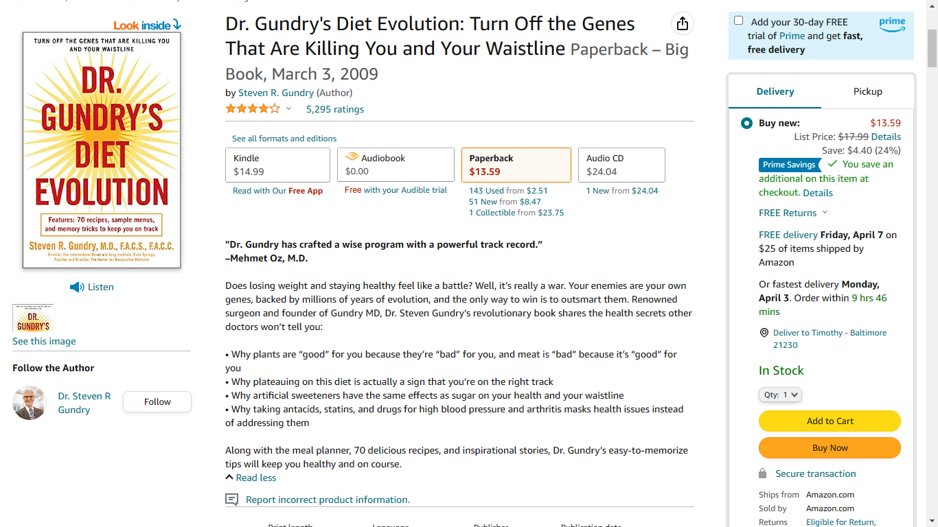Steven Gundry, MD, made a name for himself in conventional medicine, and then either went whacko or became exceptionally greedy.